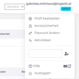 1. Klicken Sie oben rechts auf Ihre E-Mail-Adresse, um das erweiterte Menü zu öffnen.