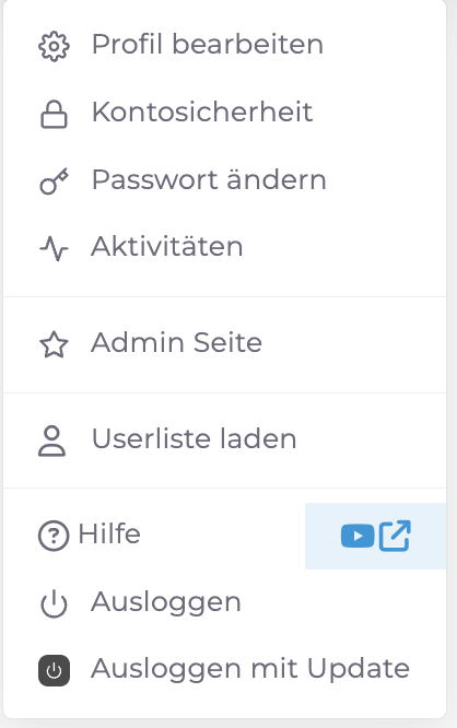 Um alle verfügbaren Schulungsvideos aufzurufen, öffnen Sie Profil bearbeiten und klicken Sie auf das YouTube-Symbol neben Hilfe (siehe blau markierte Stelle im Screenshot).