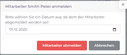 3. Mitarbeiter abmelden: Über das entsprechende Abmeldesymbol kann ein Mitarbeiter abgemeldet werden.
