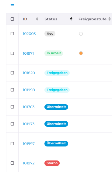 Dieser Status tritt nur auf, wenn die Einstellung 65100 „Storno erlauben (Buchung erfolgt in der Vorerfassung mit Kommentar)“ aktiviert ist. Die Rechnung wird in diesem Fall in die Vorerfassung mit dem Kommentar „Gelöscht von Workflow – nicht verbuchen“ importiert.